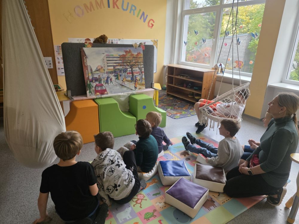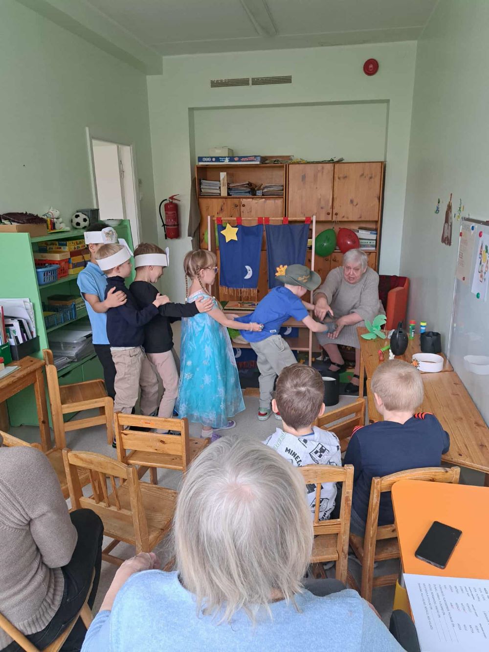 Kullakeste rühma õpetaja esitas lastele südamliku käpiknukkude etenduse hoolivuse ja sõpruse teemal. Loo tegelasteks olid rõõmsameelne karupoeg, öökull, jänes, koer ja siil.