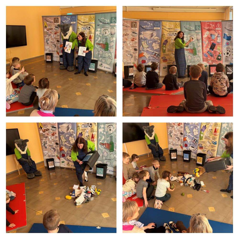 Lastele tutvustati erinevate prügikastide tähiseid ja selgitati lihtsas ning mängulises vormis, miks sorteerimine on oluline. Juttu tuli ka sellest, kuidas sorteeritud jäätmetest saab valmistada uusi asju – näiteks vanast klaasist tehakse uut klaasi, pakenditest uusi pakendeid ning biojäätmetest saab viljakas muld. Lapsed kuulasid huviga ja elasid jutule kaasa.