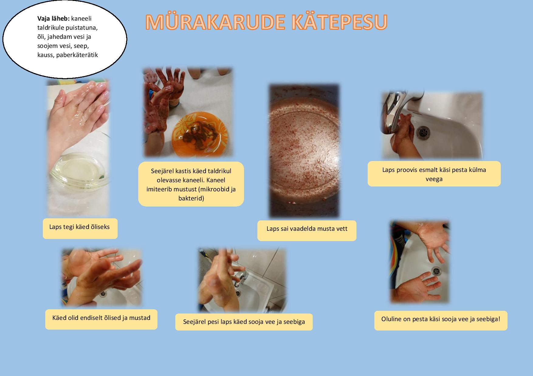 Õpetada läbi katsete lastele kätepesu tähtsust.